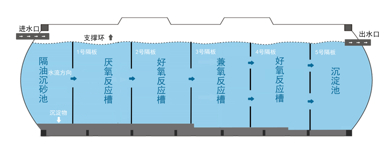 分戶式凈化槽采用多級A/O工藝,能夠有效去除生活污水中的雜物,實現(xiàn)單戶/多戶的生活污水就地處理,主要針對分散式區(qū)域的污水處理設(shè)計。采用高度集成化的一體化分散式的多級AO污水處理技術(shù)將厭氧反應(yīng)槽、好氧反應(yīng)槽、兼氧反應(yīng)槽、好氧反應(yīng)槽、沉淀槽等各項功能區(qū)集于一體化設(shè)備內(nèi),應(yīng)用于區(qū)域較分散的生活污水處理。
