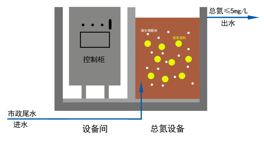 無碳源總氮提標一體化設(shè)備是采用硫自養(yǎng)反硝化技術(shù)的模塊化設(shè)備。該產(chǎn)品以專利復(fù)合硫基多孔填料、專利固體顆粒復(fù)合微生物載體為核心,無需投加外部碳源反硝化脫氮,突破了專性反硝化脫硫菌屬固定于載體顆粒并實現(xiàn)干式運輸、復(fù)合硫基多孔填料實現(xiàn)充分接觸反應(yīng)、設(shè)備標準化等難題,解決了萬噸級以下小型污水處理設(shè)施提標難度大、深度脫氮成本高效率低等瓶頸,性能達到行業(yè)先進水平。廣泛應(yīng)用于縣域和鄉(xiāng)鎮(zhèn)等小型市政污水處理廠提標改造、工業(yè)廢水深度處理等領(lǐng)域。