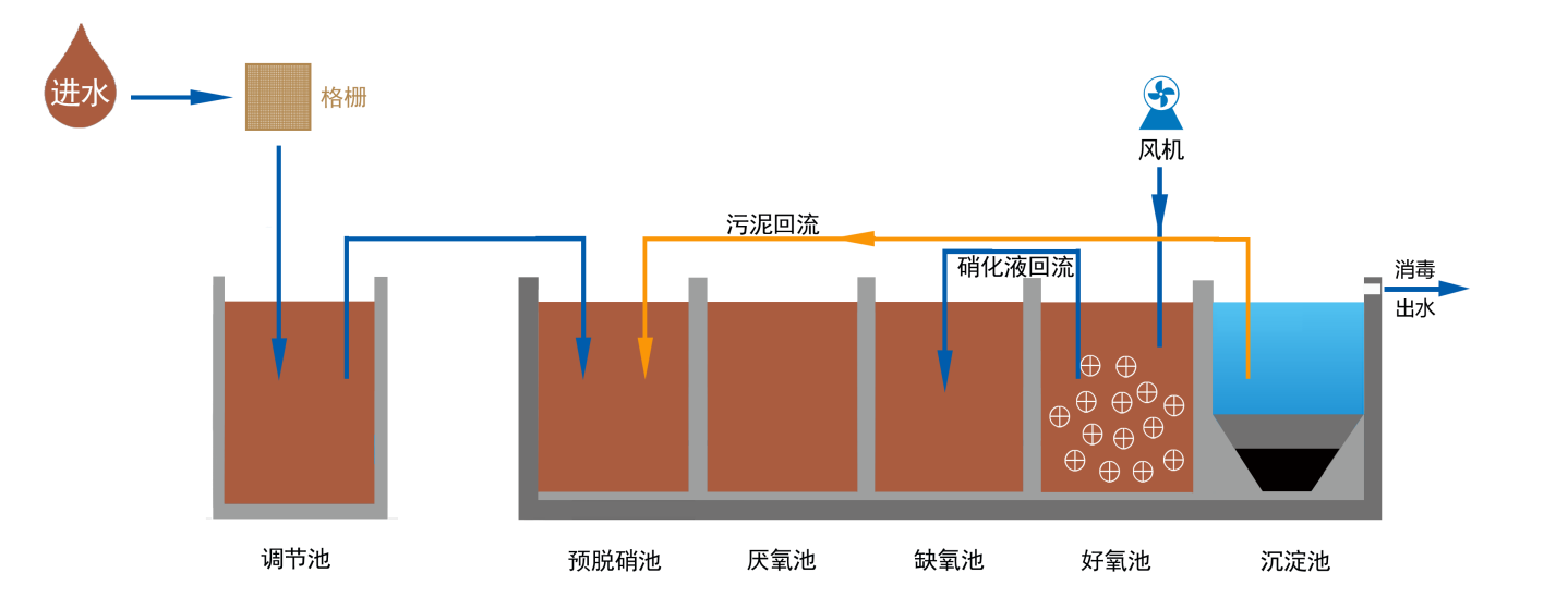 新型UCT一體化高效生物反應(yīng)器,采用改良型UCT工藝結(jié)合改性MBBR生物膜工藝,提升了傳統(tǒng)的A2/O工藝脫氮除磷效果。設(shè)備運行維護簡單,出水可穩(wěn)定達到《城鎮(zhèn)污水處理廠污染物排放標準》(GB18918-2002)一級A標準。